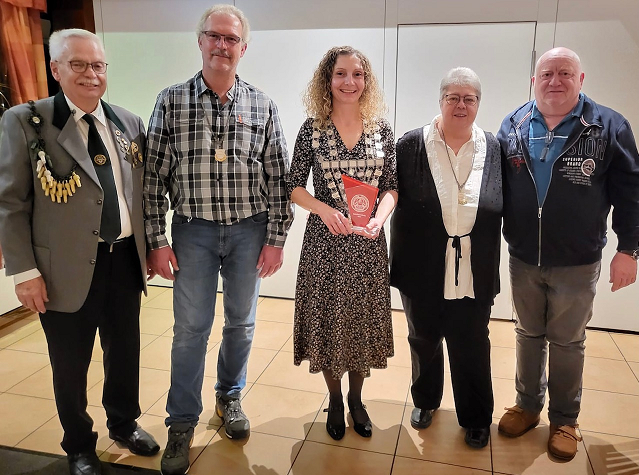 Am vergangenen Samstagabend fand unsere diesjährige Königsfeier in der Gaststätte Waldblick statt. Mitte Oktober trafen sich im Schützenhaus, nach zwei Jahren pandemiebedingter Pause, in einer geselligen Runde bei Kaffee und Kuchen 18 Mitglieder zum Königsschießen und gaben mit dem Kleinkalibergewehr auf 50m jeweils einen Schuss auf eine vorher extra präparierte Scheibe ab. Der Königsschuss wurde sitzend aufgelegt ausgeführt. Das genaue Ziel war für jeden Schützen nicht sichtbar, sodass der Schuss auf gut Glück abgegeben werden musste. Unsere neue Schützenkönigin Ines Rosenberger traf am besten und erzielte eine acht auf der zehn Ring Scheibe. Ihr zur Seite stehen die beiden Ritter Jürgen Barthold der eine etwas schlechtere acht erzielten konnte und Isolde Hekele ihr reichte eine sieben zum Titel des 2.Ritters.