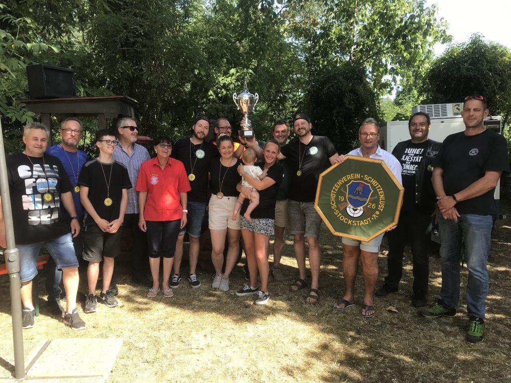 Insgesamt 18 Mannschaften, vier weniger als vor zwei Jahren, gingen mit insgesamt 54, bis in die Haarspitzen motivierten Hobbyschützen am Sonntagvormittag gegen 9:00 Uhr an den Stand um den neuen Ortsvereins – Wanderpokalsieger zu ermitteln. Wieder einmal war der Schwimmverein Delphin mit sechs gemeldeten Mannschaften, vor dem Motorrad-Club mit fünf Mannschaften, der mit den meisten Mannschaften vertretene Verein. Mit drei Mannschaften war natürlich auch der Titelverteidiger, die Gersprenz – Bazi’s, am Start.